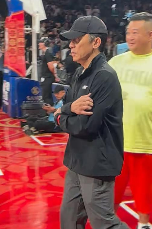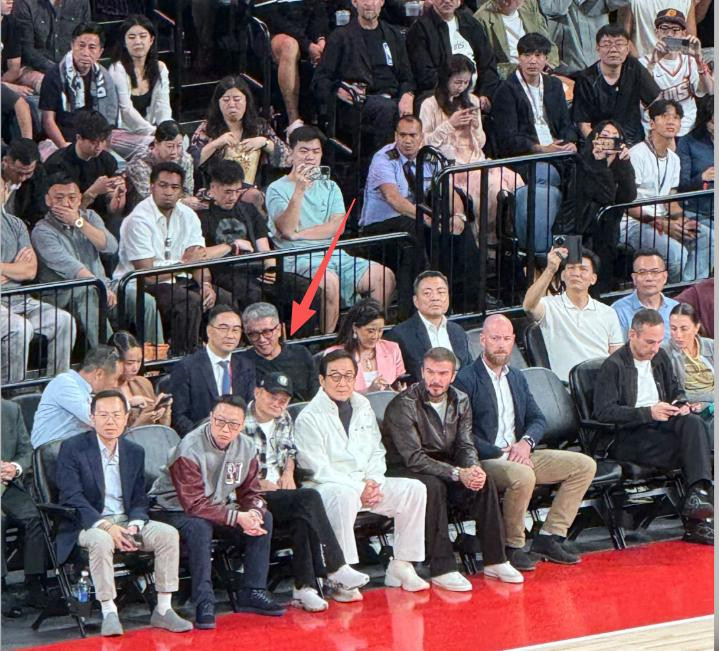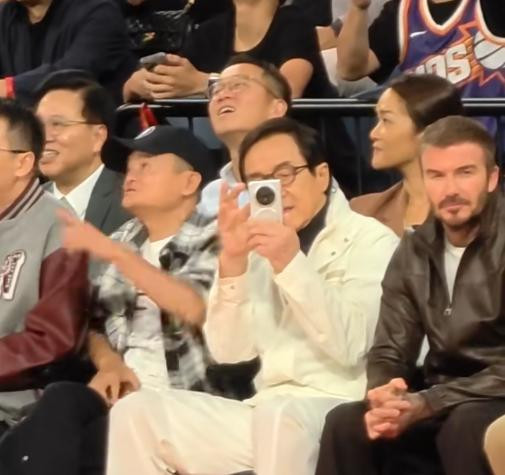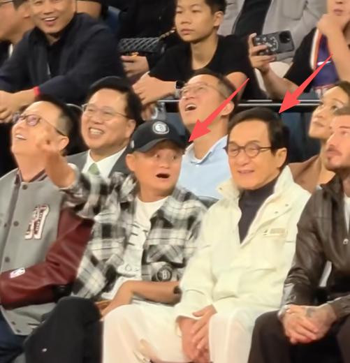 而一边的成龙则是在全神贯注看球赛,是不是还拿出手机拍照,一个内向一个外向,这两位大佬真是追求一个极致反差。