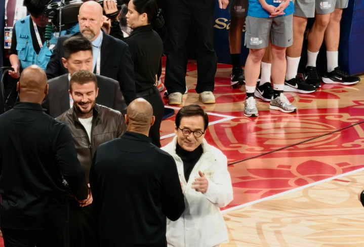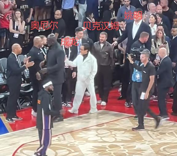 先是奥尼尔入场,紧接着成龙、贝克汉姆以及姚明先后入场。