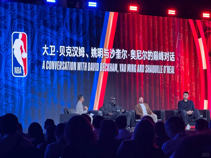 比赛开始前,姚明与贝克汉姆、奥尼尔等人在舞台上接受采访,这几位大神能坐在一起合影,估计爱球人士看到后都得热血沸腾。