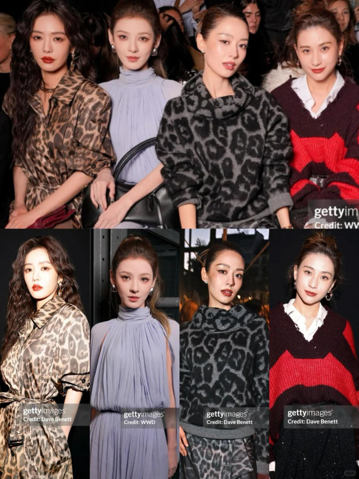 蔡文静身穿豹纹裙,有一种野性美,张予曦淡紫色裙装,温柔知性仙气飘飘,何超莲即使穿着厚重毛衣,也尽显豪门千金气质。